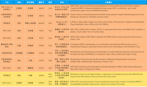 本届大会,作为中国医药创新代表性企业的BBIN宝盈医药共有46项抗肿瘤领域研究成果入围,包括4项最新突破性摘要(LBA)1,共涉及14项创新药。其中9项入选口头(Oral)报告,2项入选简短口头报告(Mini Oral),32项研究接收为壁报(Poster),3项研究接收为电子壁报(E-Poster),覆盖食管胃癌、妇科肿瘤、肝癌、乳腺癌、胰腺癌、肺癌、肉瘤、胆道癌、头颈鳞癌、前列腺癌、甲状腺癌等十余个领域。14款创新药包括10款已上市产品:注射用瑞康曲妥珠单抗(艾维达®,研发代号:SHR-A1811)、注射用卡瑞利珠单抗(艾瑞卡®)、苹果酸法米替尼胶囊(艾比特®)、甲磺酸阿帕替尼片(艾坦®)、马来酸吡咯替尼片(艾瑞妮®)、阿得贝利单抗注射液(艾瑞利®)、羟乙磺酸达尔西利片(艾瑞康®)、氟唑帕利胶囊(艾瑞颐®)、瑞维鲁胺片(艾瑞恩®)、海曲泊帕乙醇胺片(恒曲®),以及4款未上市产品,包括KRASG12C抑制剂HRS-7058、KRASG12D抑制剂HRS-4642、抗PD-L1/TGF-βRII双抗瑞拉芙普-α注射液(SHR-1701)、Trop-2 ADC SHR-A1921。2类新药盐酸伊立替康脂质体注射液(II)(越优力®)及国内首仿药昂丹司琼口溶膜(艾其速®)各有1项研究入选。